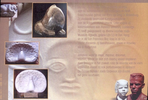 Ik maak met veel toewijding een portret van iemand, maar werk met evenveel plezier in steen. Want elke steen heeft een eigen verhaal. Sommige stenen vertellen over kristallen hoogten, scherpe, strakke vormen, essentie van de vorm, Platoonse idea. Andere stenen vertellen over de diepe aarde waaruit ze komen, over borrelende chaos, spiralen en labyrinten, verborgen schatten in duistere spelonken. Weer andere stenen verbergen een slapende gestalte.